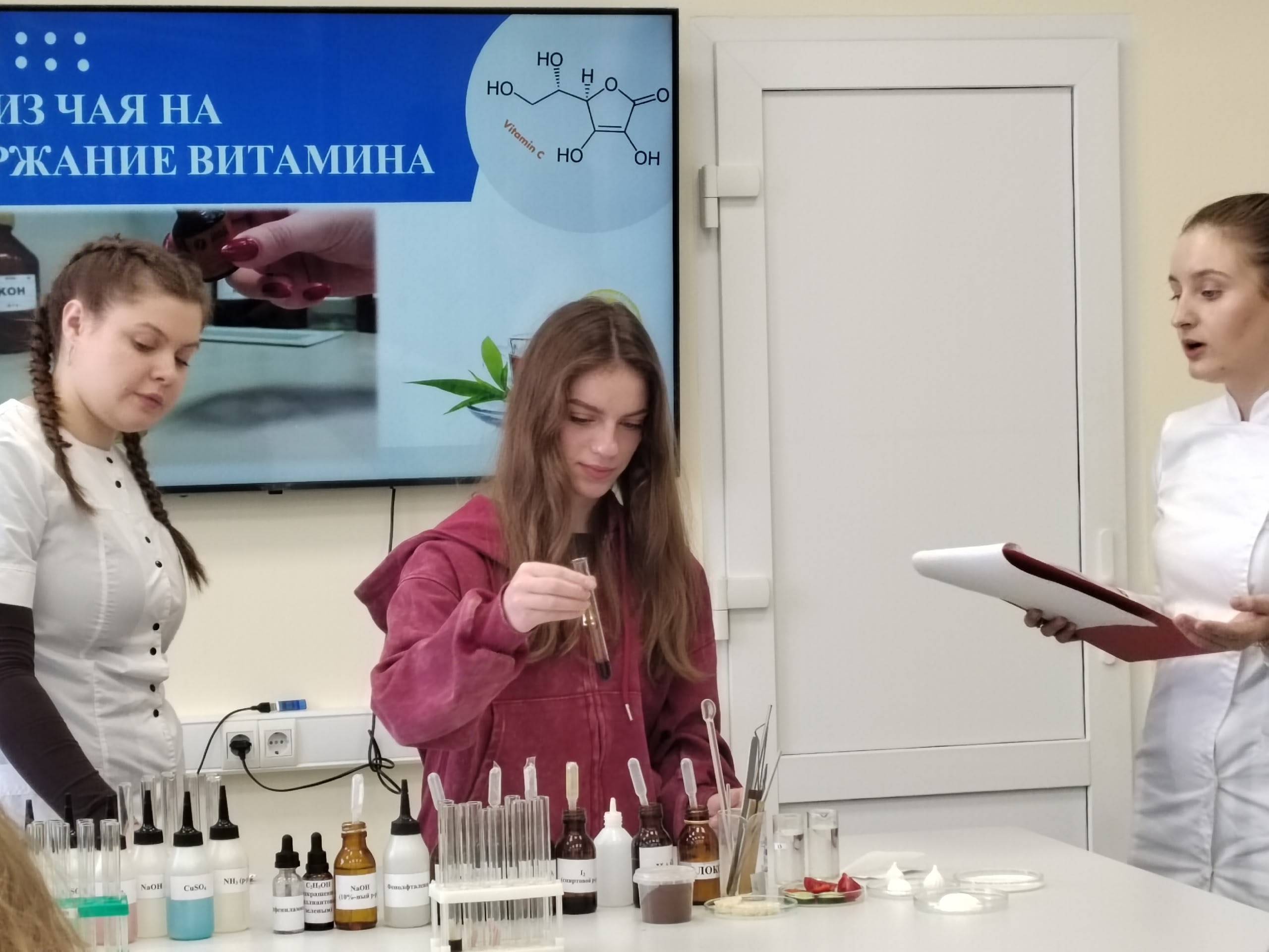 На естественнонаучном факультете ребята посетили лабораторию медицинской и фармацевтической химии, определяли качественный состав продуктов с помощью химических реакций, получали цвета радуги прямо в пробирках и участвовали в интеллектуальной игре «Самый умный».