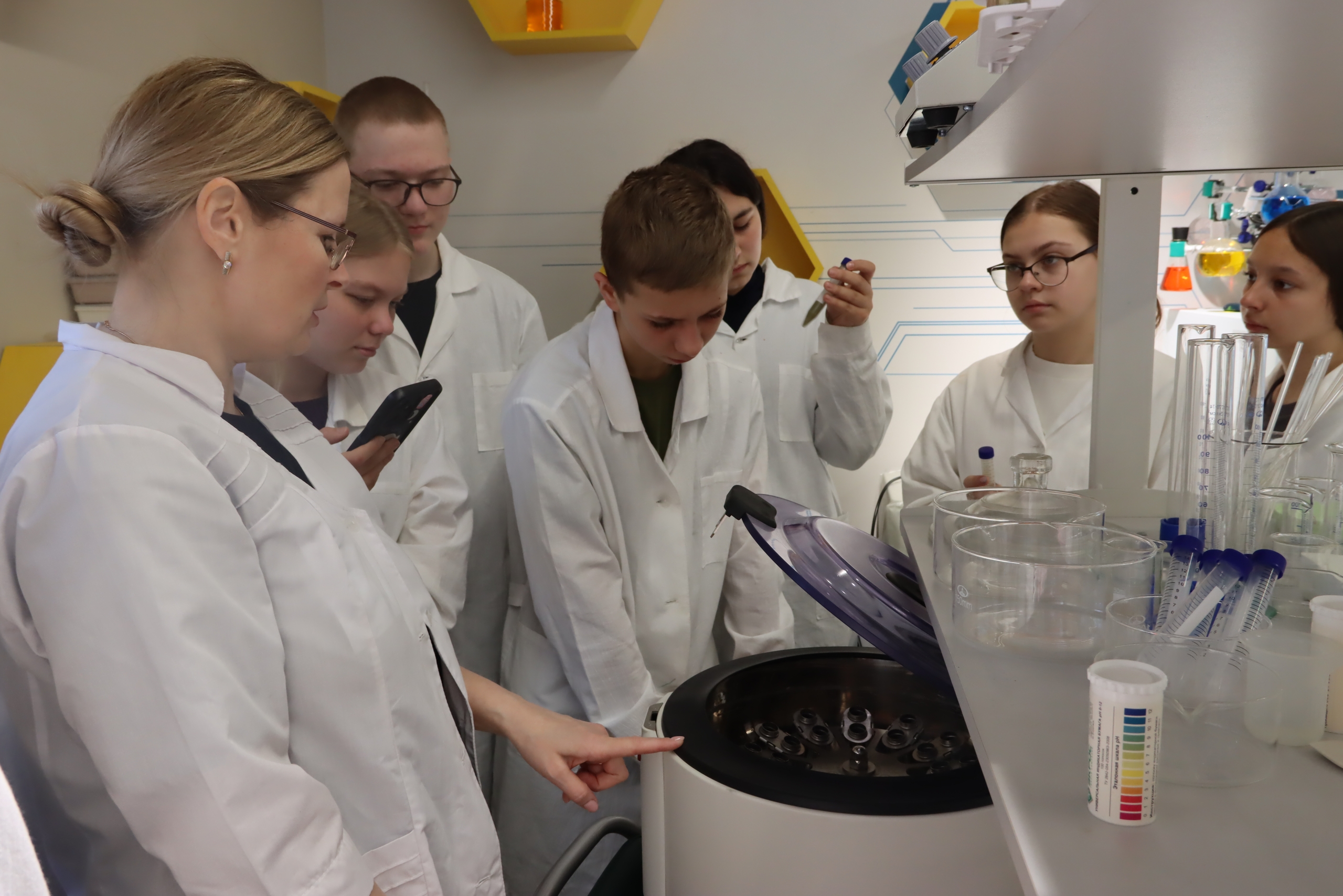 Педагоги Центра одарённых детей - Антонова Лидия Игоревна и Тесник Юлия Валерьевна - проводят для юных лесничих практические занятия по биологии и химии и знакомят с возможностями Центра.