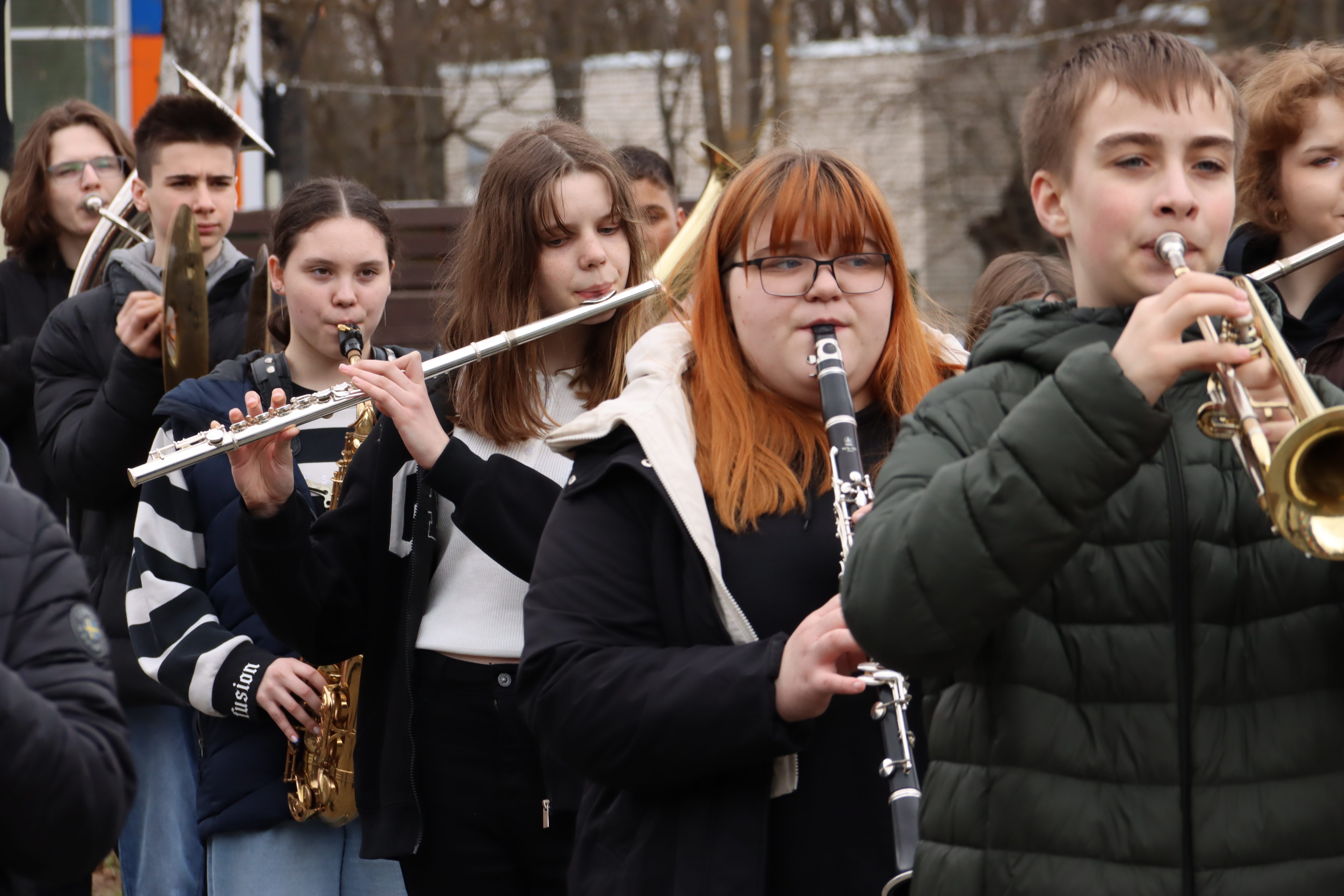 Наши музыканты не только в классах оттачивают мастерство — репетиции проходят и на свежем воздухе. В мае сводные оркестры будут выступать под открытым небом, а значит, участники должны быть готовы к любым условиям: и к солнцу, и к внезапной прохладе.